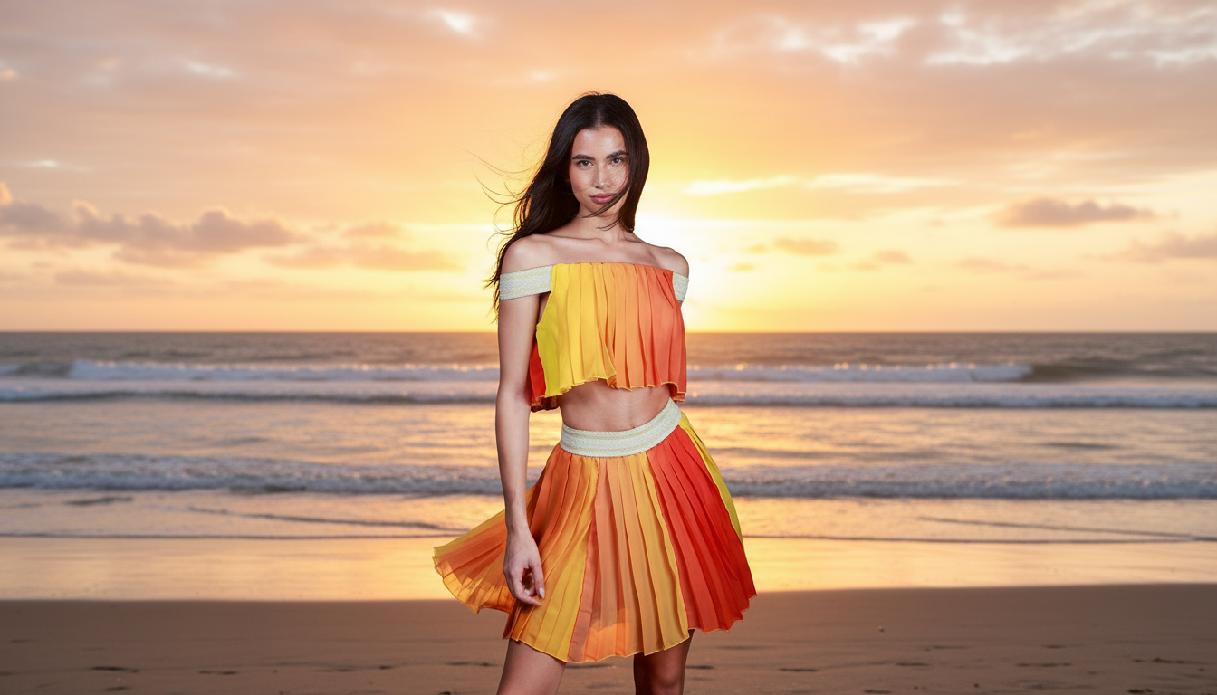 Colors bleed into one another like memories — blush into coral, gold into dusk, blue into silence. Shapes melt, reform, dissolve again; fabrics ripple with the echo of a touch. Each piece becomes a fragment of an unfinished poem, written on skin, erased by waves, remembered only in gradients.